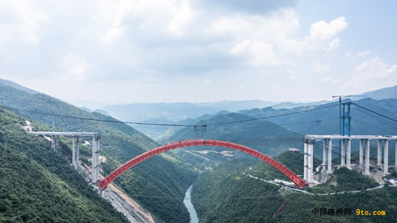 这是7月27日拍摄的大发渠特大桥主拱合龙施工现场(无人机照片)。