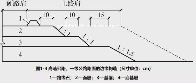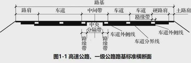 高速公路、一级公路的路基宽度一般是由车道、中间带和路肩组成的,如图1-1所示。
