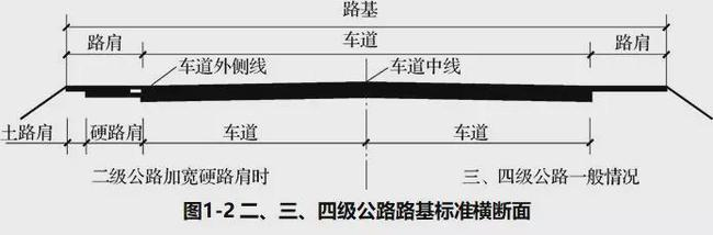 二、三、四级公路的路基宽度一般是由车道和路肩组成的,如图1-2所示。