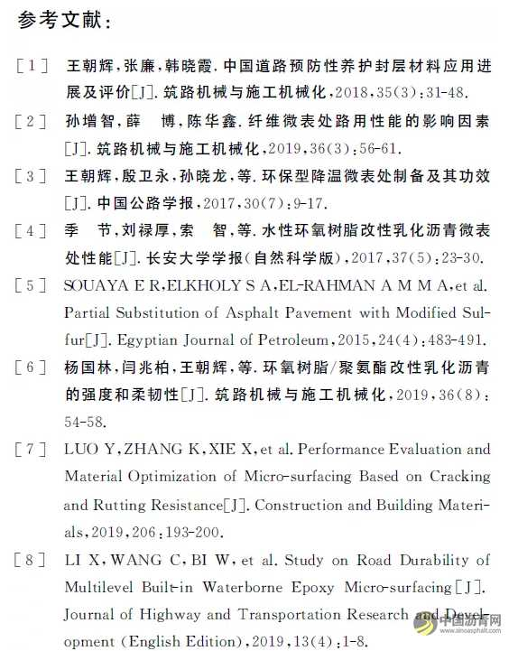 关键词 道路工程 | 水性环氧改性乳化沥青 | 微表处 | 路用性能