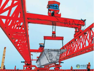 2月21日,焦作市东海大道建设项目跨菏宝高速桥梁架设现场,施工队正在吊装混凝土箱梁。东海大道全线长度20.08公里,计划今年7月底全线贯通。(刘金元 摄)