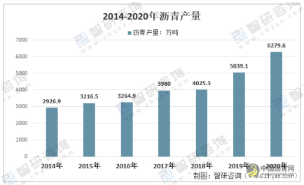 2014-2020年中国沥青产量走势统计