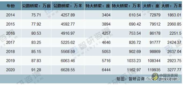 2014-2020年中国公路桥梁建设情况