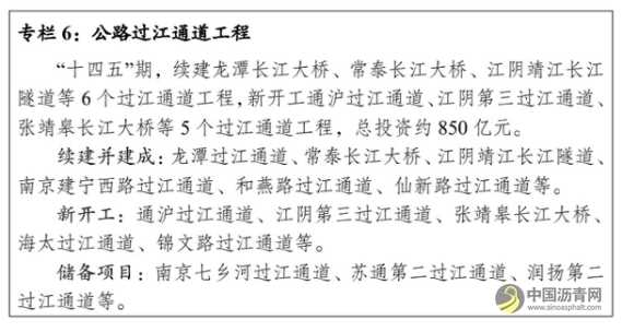 ——强化普高结合的公路运输通道。构筑高速公路+普通国省道的“普高结合”复合型公路通道,形成以“四纵四横”为主骨架的公路运输通道新格局,加快推进公路主骨架通道瓶颈路段扩容工程1000公里,建成纵二通道京沪高速新沂至江都段、纵四通道 235 国道盱眙北段,建设横四通道沪武高速太仓至常州段和312国道苏州至南京段。全力推进沿海地区高质量发展,畅通沿海交通通道,谋划新建临海高速公路,开工建设东兴高速公路东延工程,推进228国道南通段建设。助力高质量推动跨江融合发展,加快提升过江通道通行能力,续建常泰长江大桥、龙潭长江大桥、江阴靖江长江隧道等,新开工张靖皋长江大桥、通沪、江阴第三、海太、锦文路等过江通道,至 2025年公路过江通道达到20个;推进 356 省道及 346 国道与过江通道的快速连接工程。