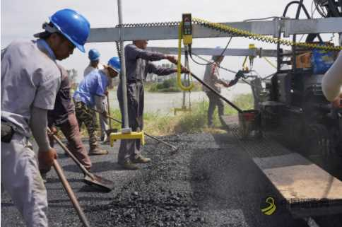 沥青路面摊铺共计7.75公里,施工期间,为保证质量的同时加快施工进度,项目负责人统筹指导施工单位加强施工组织,分解任务目标,并延长沥青路面铺筑人员有效工作时间,全力保障每天至少1.2公里有序推进。与此同时,项目负责人提前与材料供应商沟通协调,以保证施工材料得以及时供应。放眼望去,施工现场机械轰鸣,沥青路面热浪蒸腾,掀起工程建设新高潮。