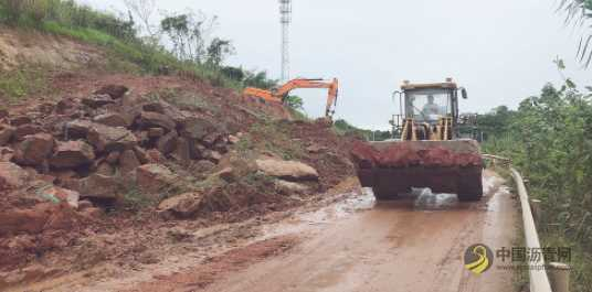 记者在现场看到,部分路段边沟正在实施排水措施,破损严重路段已铺上碎石,填平路面,边坡已加盖密目网,挖掘机、铲车等机械设备已进场开展路面清表、路基加宽等初期工程。