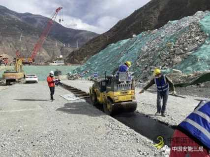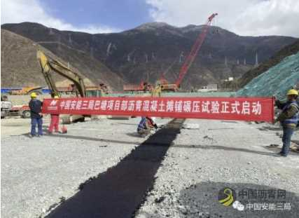 仲春之时,大好时光,春色正中分,川藏高原的金沙江畔却已骄阳似火,位于金沙江上游的巴塘项目部各个施工场地正在如火如荼的进行施工大干。3月28日,在沥青骨料破碎系统旁的试验场地区域,现场专用摊铺设备和振动碾正式开始摊铺作业,这标志着中国安能三局巴塘项目部大坝沥青混凝土摊铺碾压试验正式启动。