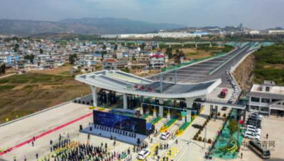 3月31日在祥云北收费站举行的云南新楚大高速公路通车仪式(无人机照片)。