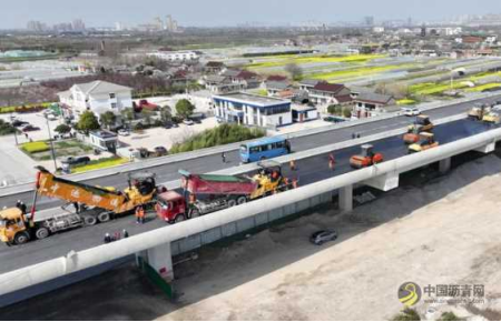 3月29日,随着一车车沥青混合料通过摊铺机平整摊铺成型并碾压密实,标志着由中铁四局二公司承建的盐城市区范公路南段工程(二期)项目迎来高架道路面首次沥青摊铺施工。本次沥青混凝土摊铺全长约700米,摊铺面积为8474平方米,由2台摊铺机同时摊铺,3台钢轮、4台胶轮压路机跟进压实,全程历时约6小时。