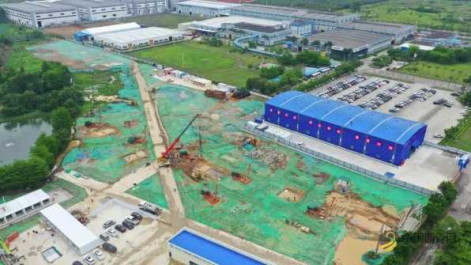 航拍珠肇高铁在高明的施工工地。邹毅强摄