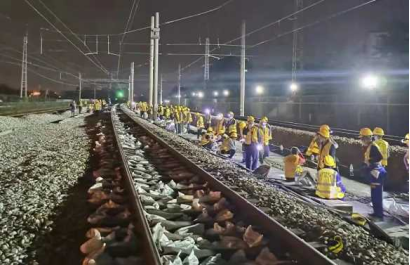 近日,广汕铁路新塘站站改广深I线线路拨接完毕,安全正点开通线路。这标志着新塘站站场改造2022年首次倒边拨接施工封锁任务圆满完成,向全面完成第一阶段倒边任务又迈进了坚实的一步。