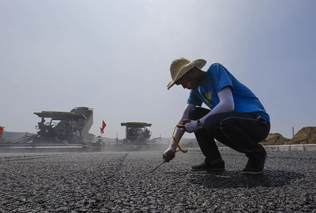 沥青道路的铺设要比水泥路简单一些,而且水泥路有横切缝和纵切缝,这对于司机来说并不友好。