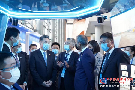 期间,交通运输部部长、党组副书记李小鹏行至徐工展区,驻足良久。