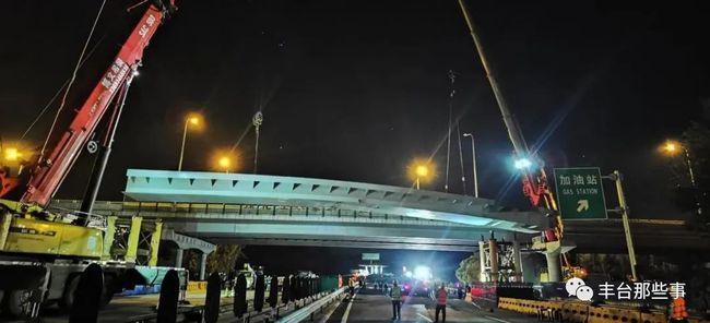 跨路段吊装作业时间紧、任务重,五环路断路施工仅有4个小时时间。施工中,吊装采用的350吨汽车吊双机抬吊,布车、收车就需占用3个小时,绝对吊装时间仅1小时。在这1小时内要完成就位调校、加固等一系列工作。面对挑战,钢构公司现场团队没有退缩,他们将吊装工作各环节分工至人,各工序衔接编排至分,分析风险源,针对性制定应急响应措施。凭借对工作的严谨、对细节的执着、对使命的担当,最终在全体参战人员的不懈努力下,顺利完成了本次吊装任务。