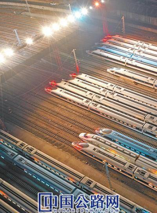 动车组列车停靠在南京动车段南京南动车所的存车线上。