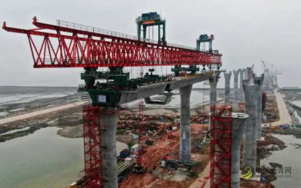 4月25日,420余名预制拼装产业工人团结一心,粤港澳大湾区超级工程黄茅海跨海通道项目东引桥左幅首跨节段梁顺利架设和湿接缝浇筑到位。