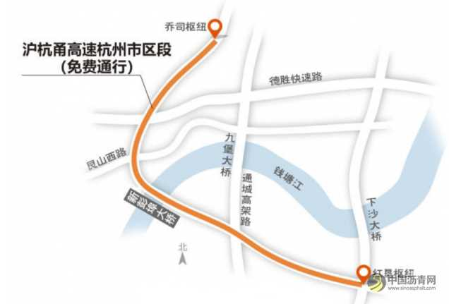 沪杭甬高速杭州市区段改建工程建成通车之后,沪杭甬高速新杭州收费站至新萧山收费站之间的路段,将变身为杭州市内的又一条南北向的跨江城市快速路,实现免费通行。