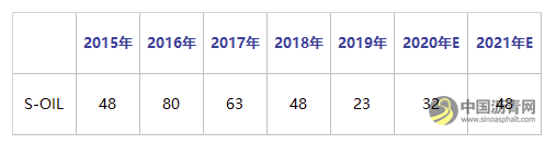 以下是2015-2021年S-oil沥青出口至中国的产量参考如下:
