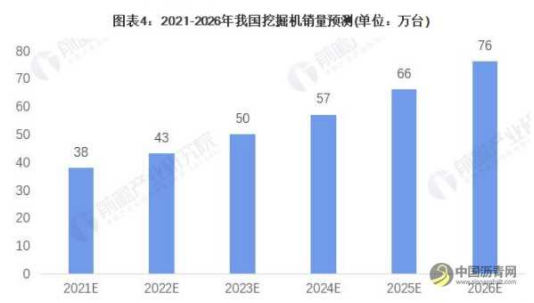 未来,随着我国基建工程、交通建设等工程的开工,对挖掘机的需求量会持续增加。根据往年挖掘机销量以及“十四五”规划中提到的我国工程建设情况来看,未来我国挖掘机的销量将以每年15%的增速增长,到2026年我国的挖掘机销量约能达到76万台左右。