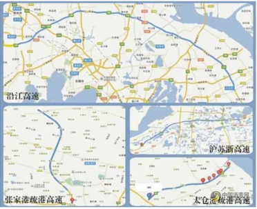 其中:沿江高速公路(常州至太仓段)是江苏省高速公路规划中“四纵四横四联”主骨架网“联三”的重要组成部分,其董浜枢纽以西的S38通往合肥,是中西部开发战略和实现横向经济协作发展重要枢纽——常合高速的一部分,董浜枢纽以东的G15接连上海,是江苏省与上海市的主要出入通道之一。