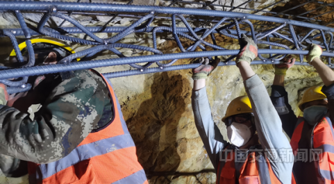 盘顶山隧道进场施工后,项目第一时间组织经验丰富的技术人员和作业工人投入施工一线,秉承“机械化换人,自动化减人”的理念,采用“长隧短打”的方法,从隧道进口、出口、斜井三个工区同时开展施工。应用三臂凿岩台车、大跨度双线仰拱液压栈桥、湿喷机械手、电缆沟模板台车等大型工装设备,配置人员实名制进洞、AI行为识别、视频监控、环境监测等智能设施,制定专项技术方案,强化施工现场过程管理,逐个击破施工难点。此外,项目克服疫情期间人员进场、物资进场、炸药配送等难题,全力保障盘顶山隧道施工有序推进。截至目前,隧道右洞出口段已提前2个月贯通。