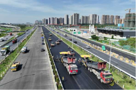 昨天,建设者顶着高温烈日在宁马高速主线进行沥青摊铺施工。宁马高速改扩建工程是南京都市圈交通一体化的重点项目,南京段项目起自刘村互通,向西南沿既有老路扩建,止于铜井镇(苏皖省界),路线全长约二十六公里。