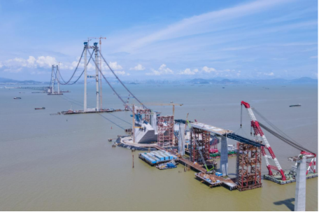 目前,深中通道伶仃洋大桥西锚碇区域钢箱梁安装施工,正在按照计划稳步推进。深中通道预计2024年建成通车,建成后将成为连接珠江口东西两岸的直联通道。