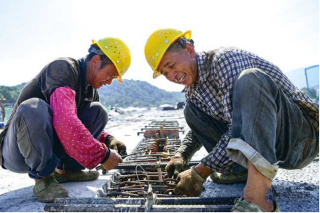 阳光暴晒下的户外作业,克服挑战抢抓工期