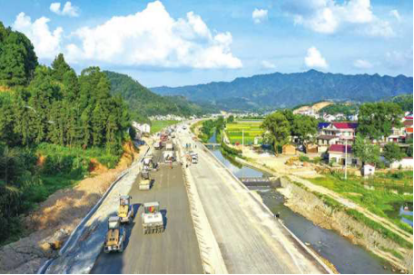 金阳大道三期蕉溪镇常丰村段,工人们抢抓晴好天气,机械开足马力,摊铺水稳层,呈现出一派火热的施工景象。