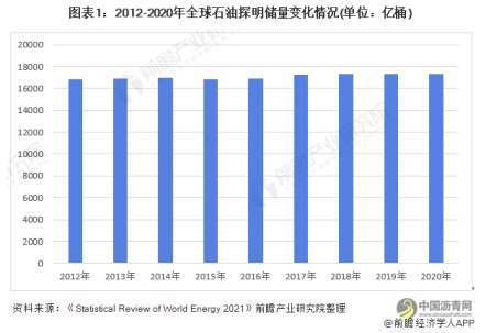石油作为非可再生资源,其储量十分有限。当前,全球石油开发能力不断提高,根据BP公司发布的《BP世界能源统计年鉴2021》数据,2012-2020年,全球石油探明储量整体上呈现上升趋势,但整体储量变化并不明显。2020年,全球石油探明储量为17324亿桶,与2012年相比仅上升了2.81%,但总体来说储量较为充足。