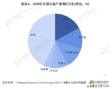 从区域结构来看,2020年石油产量TOP10国家分别为美国,沙特阿拉伯,俄罗斯,加拿大,伊拉克,阿联酋等。美国是全球第一大石油生产国,占全球石油生产总量的17.11%,已连续第三年成为全球增产最多的国家。