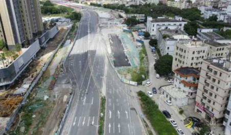 高新大道是坪山区“五横十纵”主干路网中的重要一横,于2020年8月正式开工,目前已完成总工程量的47.86%。