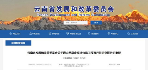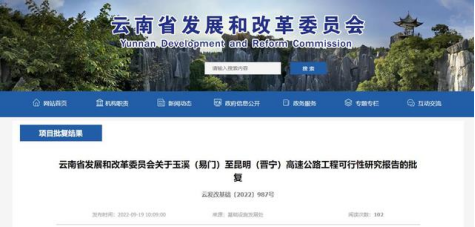 9月19日,云南省发展和改革委员会网站发布《关于玉溪(易门)至昆明(晋宁)高速公路工程可行性研究报告的批复》《关于巍山至凤庆高速公路工程可行性研究报告的批复》,原则同意建设玉溪(易门)至昆明(晋宁)高速公路、巍山至凤庆高速公路,详情如下。