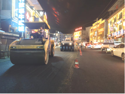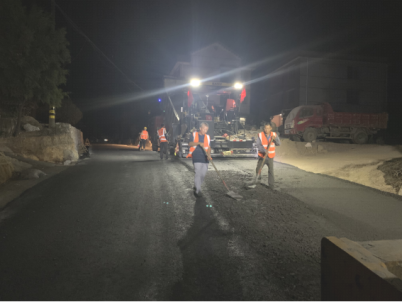 G354线铎山路段夜间施工中 S235线三尖路段,经过两个多月的建设,提质改造工程已进入关键期,开始对路面进行水稳碎石基层摊铺,这也是公路施工中抓质量的关键。施工人员白天干到黑夜直至夜深人静,日复一日,依旧没有丝毫懈怠。 “在国庆节前完成路面主体工程是我们的建设目标,我们会克服一切困难去完成,早日为群众的出行提供便利。”该路段负责人段海峰如是说。