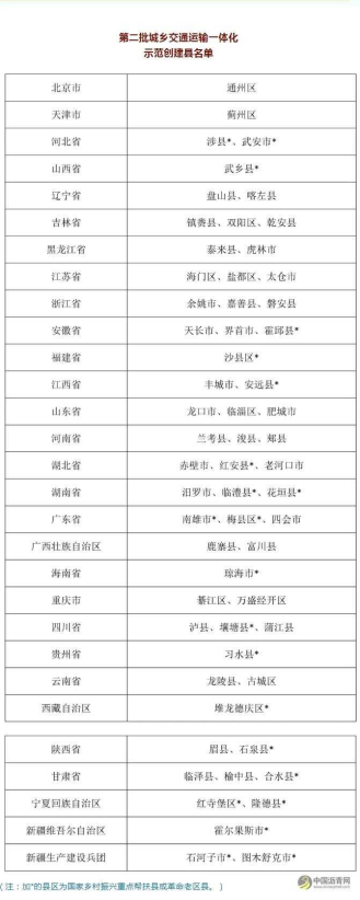 为贯彻落实《中共中央 国务院关于全面推进乡村振兴加快农业农村现代化的意见》,深入推进城乡交通运输一体化示范县创建,近日,交通运输部印发通知,确定北京市通州区等61个县(区、市)为第二批城乡交通运输一体化示范创建县。