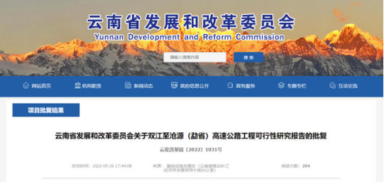 《关于双江至沧源(勐省)高速公路工程可行性研究报告的批复》