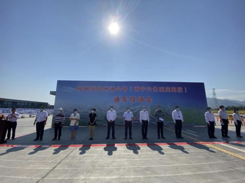 2022年10月17日,历经七百多个日日夜夜的艰苦奋战,由南宁交投集团联合中国铁建投资建设运营的首条高速公路——桂林至钦州港公路(南宁六景至宾阳段)(以下简称六宾高速公路)提前10个月建成,在宾阳南收费站外广场举行通车仪式,正式通车。