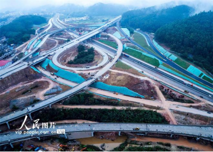 广西南宁市西部陆海新通道“交通网”建设如火如荼,广西南宁市至百色市平果市高速公路,南崇城际铁路,贵南高铁等工程项目预计于今年年底前建成。潘华清摄(人民图片网)