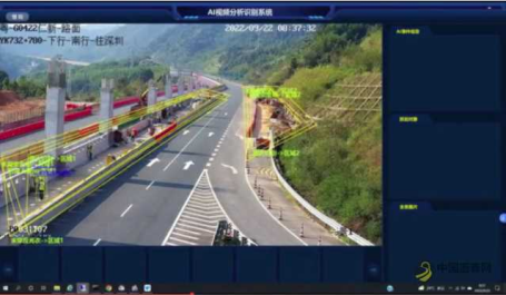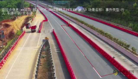 系统通过高清摄像头和AI智能分析,对深渡水互通涉路施工区域进行全过程实时监测,可以在一秒内发现施工区域违规异常,并弹窗提醒监控人员,有效提升了涉路施工异常事件的发现和处置效率。