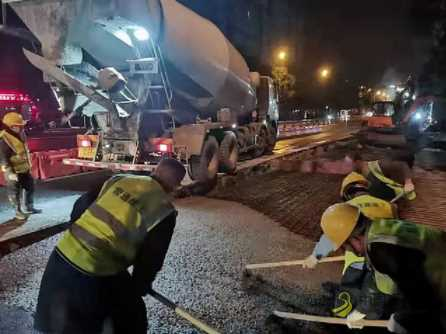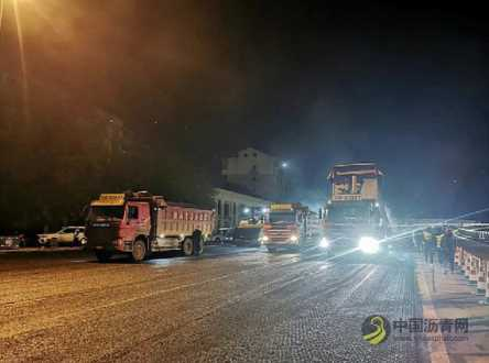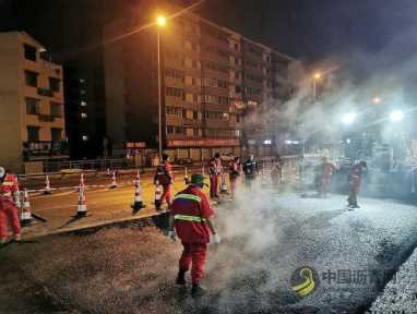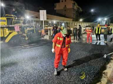 11月8日凌晨,立冬后的绵阳有些寒冷,可在临园路道路提升工程项目施工现场,到处呈现出热火朝天的场面。在施工现场负责人刘洋的带领下,记者来到施工现场,40余个工人分工有序,有的在铲平路面,有的在铺设防裂贴,有的在忙着摆放锥形桶,20余辆满载沥青材料大货车不停穿梭运输……