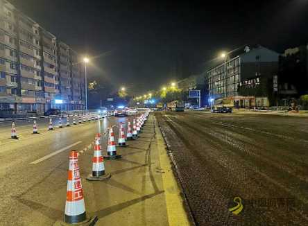 为减少沥青路面施工对交通影响,项目采取半幅封闭夜间施工方式,首先进行半幅封闭施工,对其沥青路面铣刨及摊铺施工,其间,车辆可以从另一侧通行,半幅施工完成具备通行条件后开放交通,再进行另半幅封闭施工。