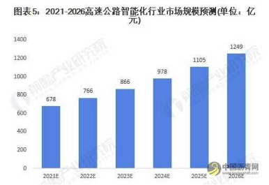 高速公路的智能化建设,是适应社会发展的必然要求,也是高速公路实现自身发展的必然路径。随着现代信息通信技术、网络技术、传感技术等先进技术的不断更新升级,高速公路总里程的持续增加,以及维护、升级改造的不断实施,预计未来我国高速公路智能化行业市场规模将不断增长,到2026年我国高速公路智能化行业市场规模将突破1200亿元,年化增长率在13%左右。