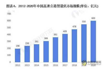 根据高速公路建设投资情况和中国智能交通协会公布的数据,2012-2020年,中国高速公路智能化市场规模从198亿元增长至600亿元,呈现不断上升的趋势,随着中国高速公路智能化建设的进一步发展,市场规模将持续攀升。