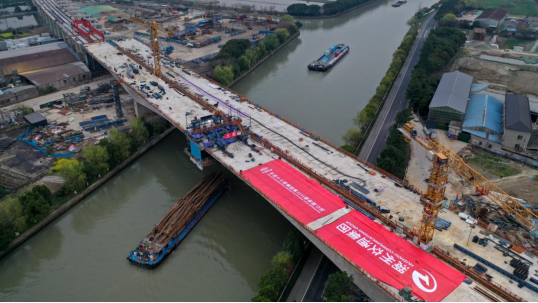 湖州交通集团湖杭高速指挥部相关负责人介绍,“旧馆高架桥1#桥连续梁跨越的长湖申运河,是湖州市航运交通的重要干线,货运量占湖州航运的80%以上;G318国道晚高峰每小时车流当量超过2000辆,桥下航道运输繁忙、车流量大,连续梁涉航涉路施工任务重、安全风险极高。”