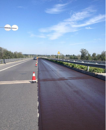 其实这些路面,是经过喷雾处理,也就是把乳化的沥青,和沙子一起喷在路面上,干燥以后就像铺了一层沙纸,能够提高抓地力,但是这样的修复不耐磨,很容易再次磨平,导致又需要重新维修。