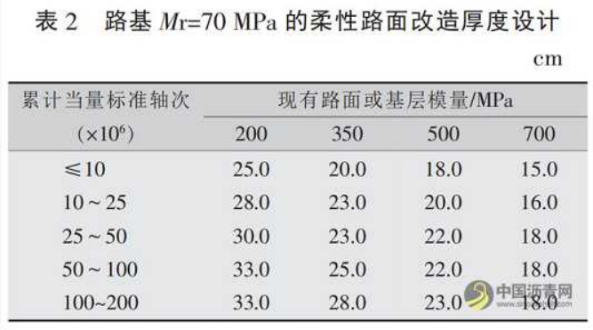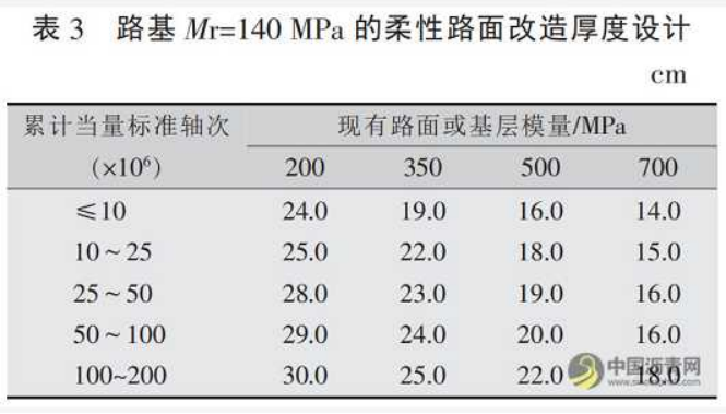 2)如果基层不适合升级,其不能升级形成长寿命半刚性路面,但可升级形成长寿命全柔性路面,半刚性路面现有基层将形成潜在的长寿命全柔性路面路基的一部分。