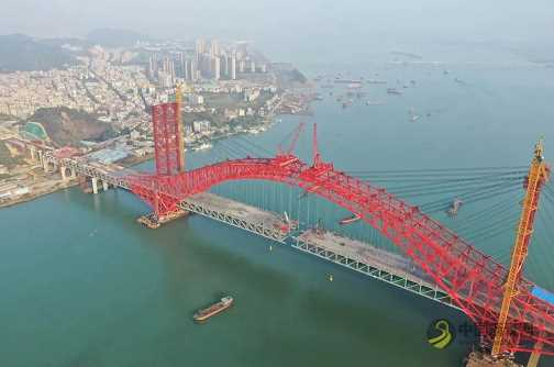 图为2021年1月,明珠湾大桥拱肋成功合龙。(来源:广州日报)