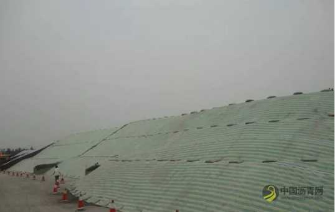 1、基层碾压完成后立即进行养生,养生时间至少7d,直至沥青面层施工时清扫基层工作面,方可停止养生。采取双层养生毯覆盖,养生毯必须结实完整无破损且双面带毛绒。覆盖时纵、横向搭接宽度均不少于20cm ,养生期间保持湿润,并间隔300米设置彩钢瓦,半幅施工中间设置隔离墩及彩条旗,同时每隔60米设置一道挡土埂。挡土埂按照精细化相应尺寸进行设置。