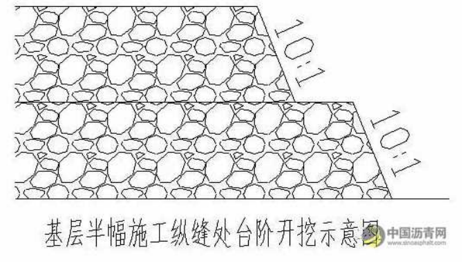 1、与老路基层纵向接缝时,台阶开挖要顺直、密实,不能出现掏空、内倾现象。