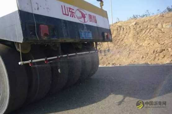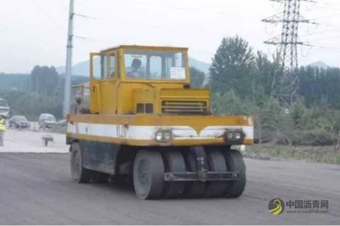 胶轮压路机改进洒水装置向上洒水,确保表面湿润: